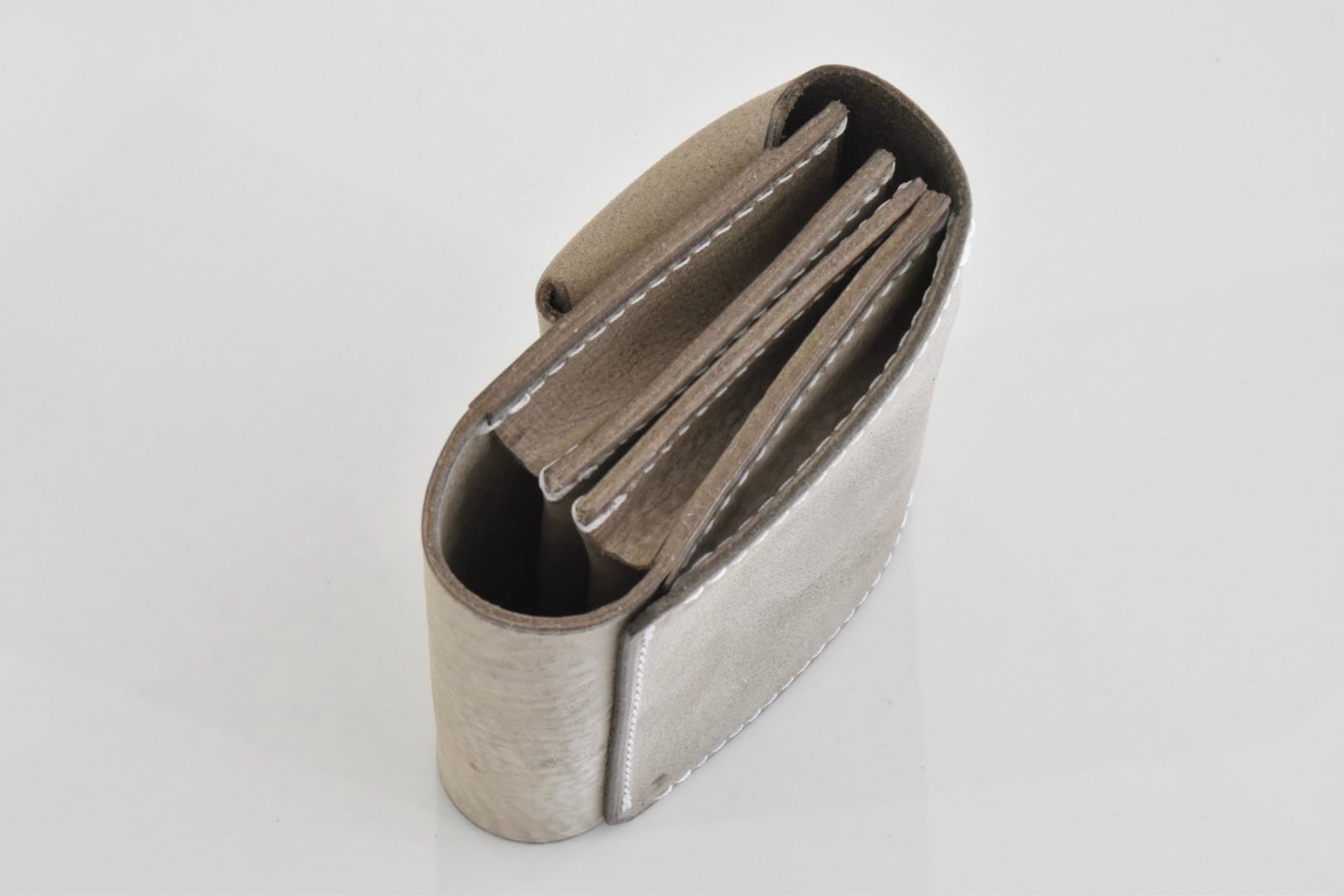 イタリアンレザーの表面にホワイトワックスを吹き付けたロウ引きの革を使用しています。