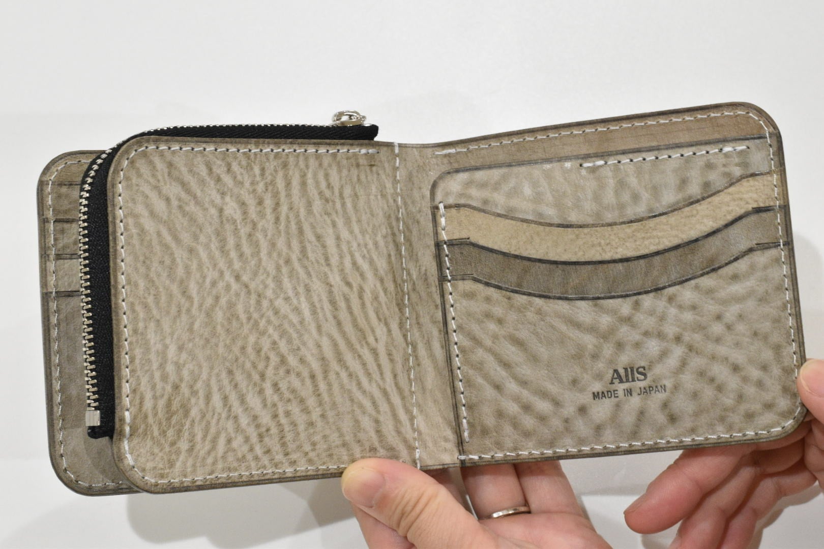 こちらのL型二つ折り財布は、珍しいデザインと構造で男女問わず人気の財布です。